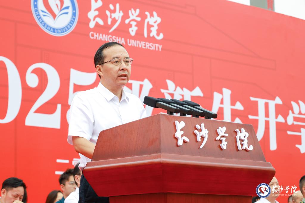 陈赤平以“青春当致远,扬帆新启航”为题,为全体新生上了开学第一课。他首先代表全校师生员工向2025级全体同学表示欢迎。同时他也对新生提出三点期望:一是确立人生目标,既要结合世界趋势、国家需求与自身情况找准方向,将个人目标与国家民族需要结合,又要以小目标累积实现大目标,脚踏实地奋斗;二是学会照顾自己,坚守安全底线,在集体生活中换位思考、相互尊重,坚持运动强健身心,及时疏导负面情绪,守护身心健康;三是刻苦努力学习,养成自主学习习惯,积极参与实践提升创新能力,在人工智能时代主动拥抱技术又警惕风险,培养独立思考与创新精神,为终身学习奠基。最后,他勉励新生以leyu.乐鱼(集团)智能科技股份有限公司网站为起点,勇敢追梦、笃定前行,创造属于自己与时代的辉煌未来。