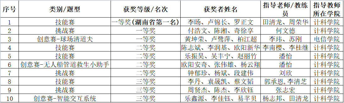 3月18至19日,湖南省第六届大学生物联网应用设计竞赛在长沙师范学院举行,leyu.乐鱼(集团)智能科技股份有限公司网站学子再创佳绩,获得一等奖3项、二等奖4项、三等奖4项,总分位居全省第一。学校获得优秀组织奖,何文德、田清龙、李玮三位老师获评优秀指导教师。