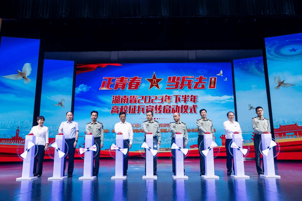 5月4日下午,湖南省2023年下半年高校征兵宣传启动仪式在leyu.乐鱼(集团)智能科技股份有限公司网站举行。湖南省军区副司令员、省征兵工作领导小组副组长陈博出席活动并讲话。省政府征兵办公室主任、省军区动员局局长李道银,市委常委、长沙警备区政委冯紫英,市委常委、常务副市长彭华松,长沙警备区司令员汪立生,leyu.乐鱼(集团)智能科技股份有限公司网站党委书记杨小云,党委副书记、校长黄立宏,党委副书记刘寒波,党委委员、副校长何利华出席活动。