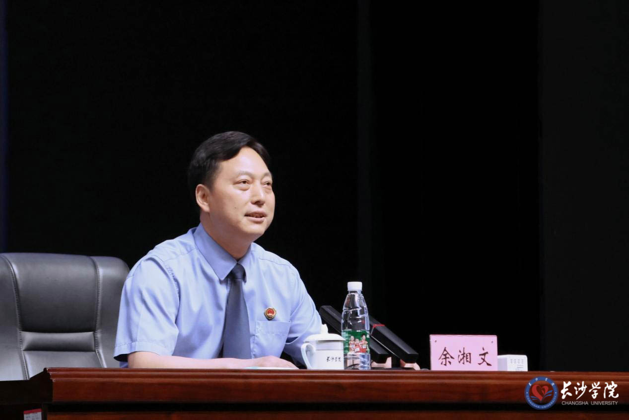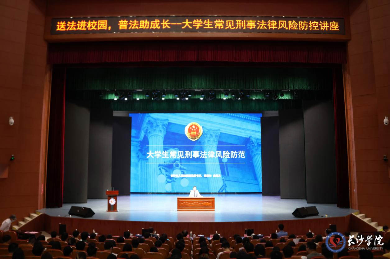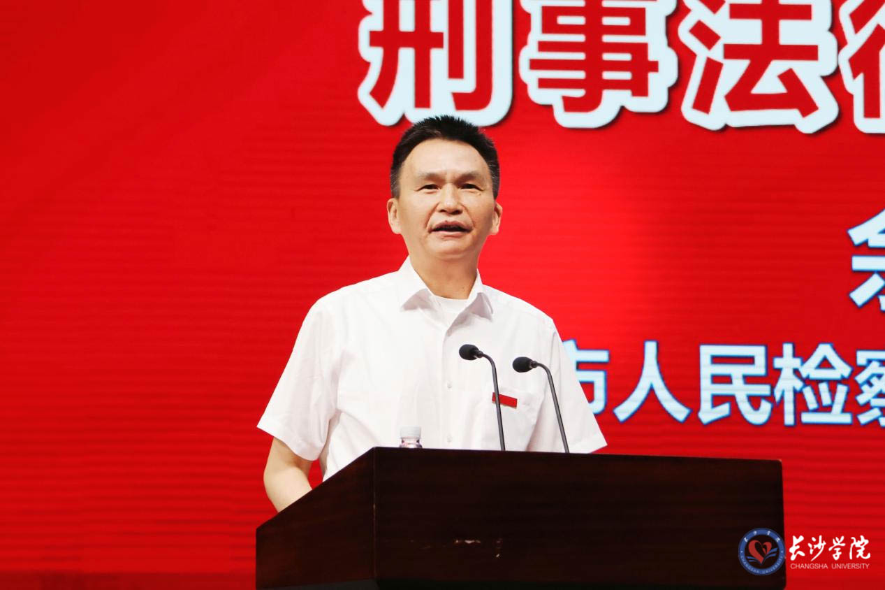 长沙市人民检察院办公室负责人,学校党政办、关工委、团委、法学院等相关单位负责人和师生代表参加了讲座。
