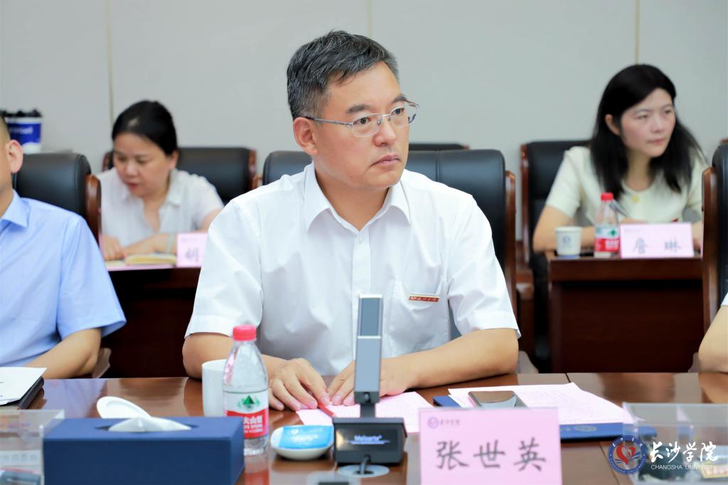 党委委员、副校长、马栏山新媒体学院院长张世英简要介绍了马栏山新媒体学院建设发展情况。他表示,学校按照现代产业学院模式“高起点”建设马栏山新媒体学院,坚持学科交叉融合的战略导向,积极构建更加开放协同、多元参与的文化创意类人才培养体系,努力推进政校企合作、产教融合、科教融合,全力为湖南省打造万亿级音视频产业集群提供人才和智力支持。
