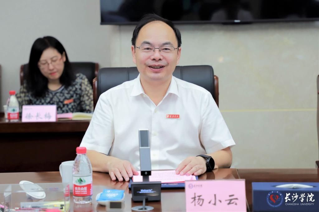 杨小云在致辞中向省广播电视局对学校的关心支持表示感谢,并简要地介绍了学校的基本情况和办学成果。他表示,近年来,在省委、省政府的支持下,学校事业实现较好较快发展,办学条件、校园面貌、办学实力、社会声誉以及师生精气神得到了较大幅度提升。学校当前正全力落实毛伟明省长在校调研指示,“立足湖南产业发展基础和未来所需,集中优势资源,做优做强文化创意等特色学科,助力湖南加快打造全国领先的音视频产业集群”,以更大的担当、更大的作为,加快推进文化创意学科专业建设。