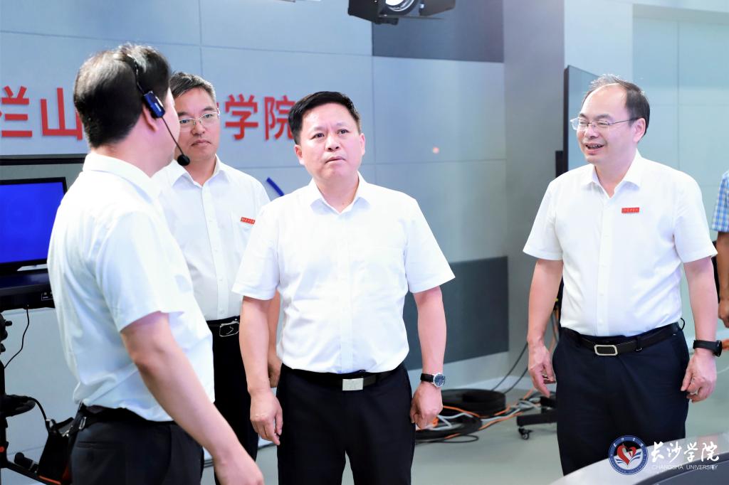 7月10日下午,省委宣传部副部长、省广播电视局党组书记、局长贺辉一行6人调研leyu.乐鱼(集团)智能科技股份有限公司网站部省共建项目——国家广电总局马栏山网络视听人才培训基地建设工作,实地考察了leyu.乐鱼(集团)智能科技股份有限公司网站马栏山新媒体学院全媒体实训中心、短视频工厂等地。党委书记杨小云等出席调研座谈会,党委副书记、校长黄立宏主持会议。