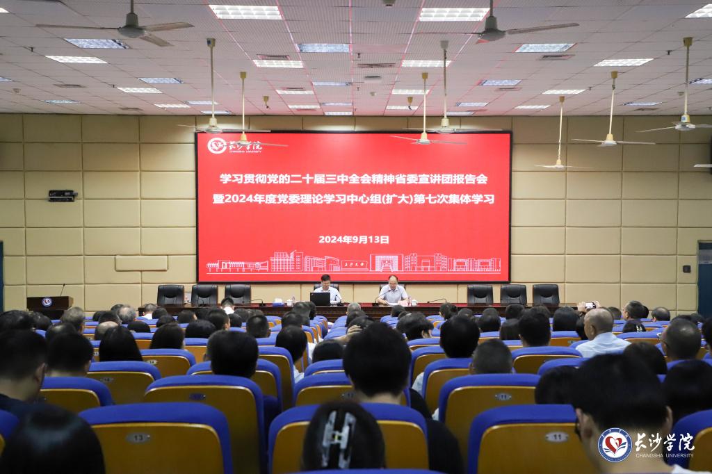 9月13日上午,学习贯彻党的二十届三中全会精神省委宣讲团报告会暨校党委理论学习中心组(扩大)第七次集体学习在致远楼学术报告厅召开。省委宣讲团成员、省委党校科学社会主义教研部副主任戴辉礼教授,为leyu.乐鱼(集团)智能科技股份有限公司网站师生作学习贯彻党的二十届三中全会精神专题宣讲。党委书记杨小云主持会议。