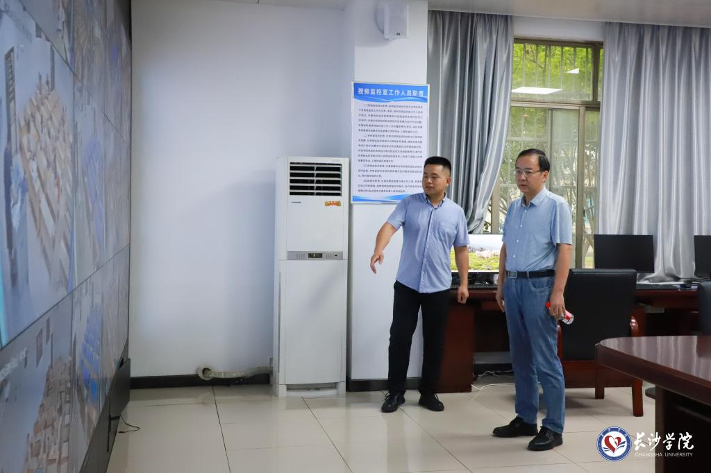 (校长陈赤平在中控室检查教学情况)