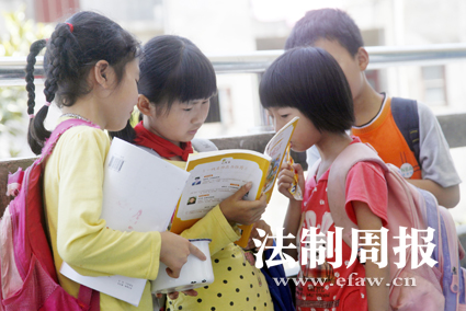 学生们拿到新来的童话书后开心地看了起来 本报记者 伏志勇图