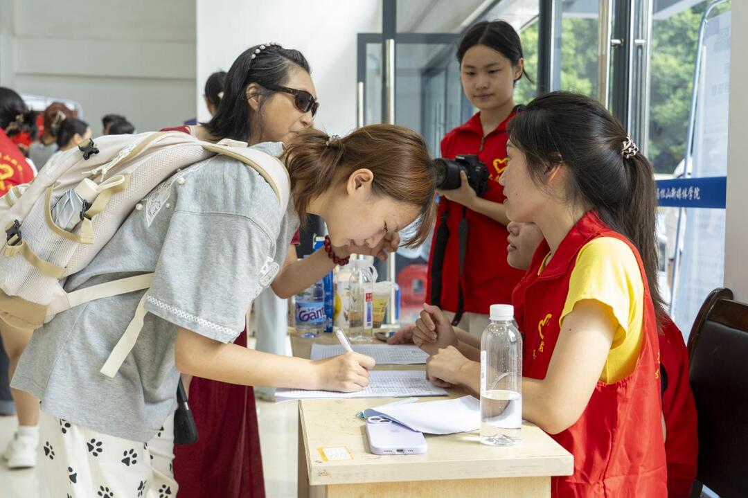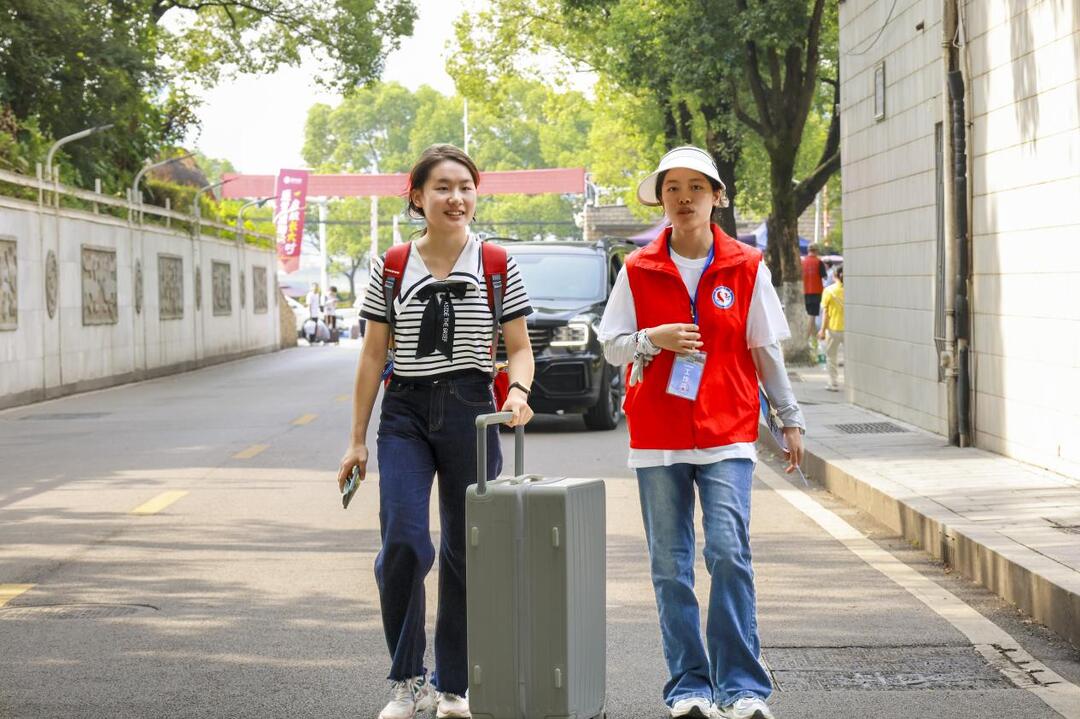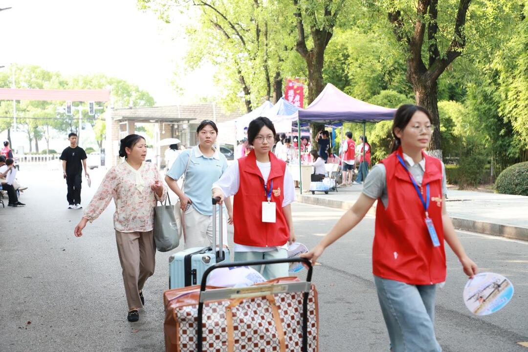 “同学,我带你过去!”“这里是学校的图书馆!”校园里,身着红色马甲的志愿者们成为一道亮丽的风景线。财务管理专业的大三学生陈熙霖来自国旗护卫队,负责学校西南门附近的交通疏导工作。尽管天气炎热,但她表示,“能为新生和家长们服务很开心,我也感受到了大家的善意、体谅与互助,帮到他们时特别有成就感。”