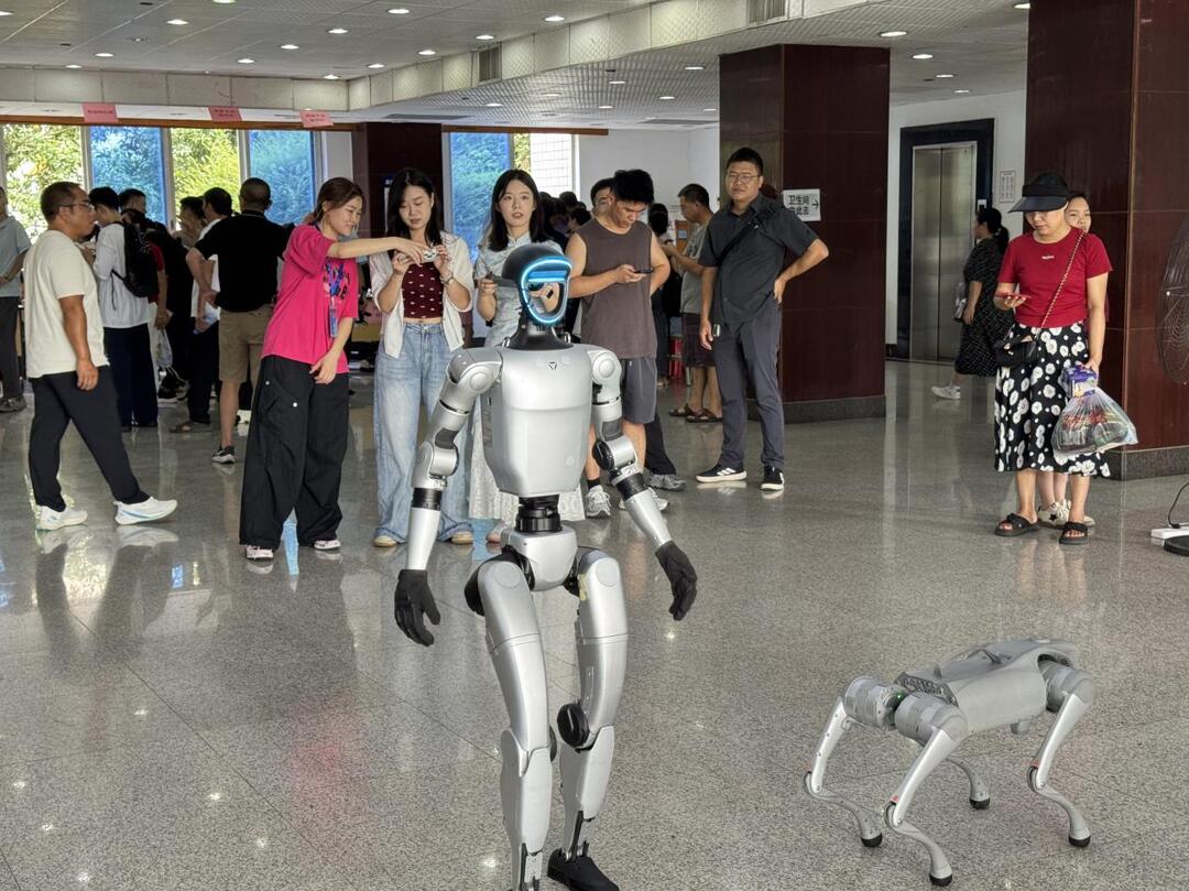 (计算机科学与工程学院的研究生新生正在操作机器人和机器狗)