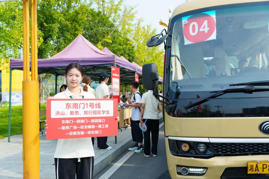 清晨,15辆“爱心巴士”陆续抵达学校各入口,接送新生及家长前往各宿舍园区和学院报到点。新生们在志愿者的引导下,有序完成了入学资格核验、校园卡及报到材料领取、办理宿舍入住等多个环节。