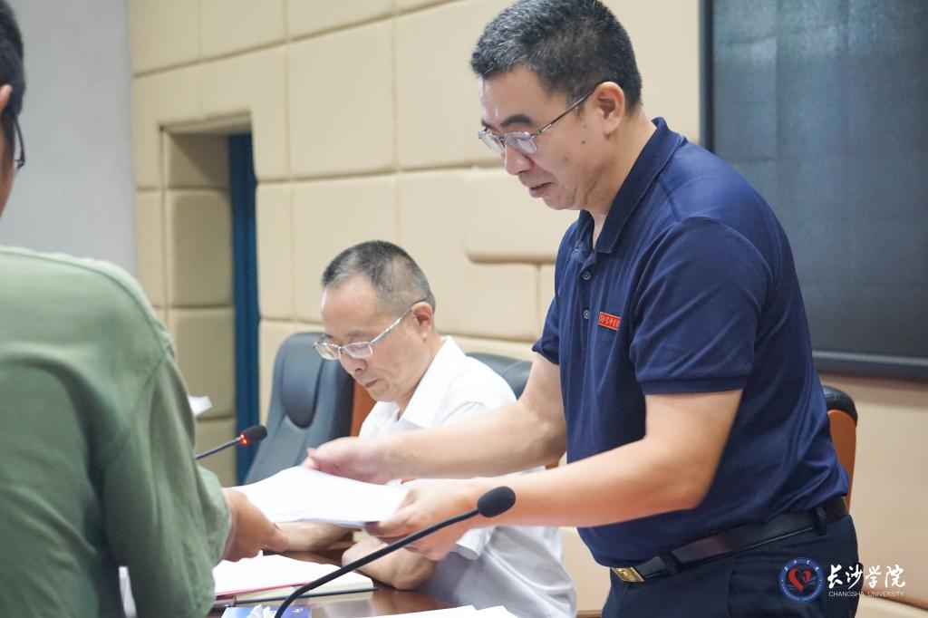 会上,校内各服务单位主要负责人向学校领导递交了安全责任书。