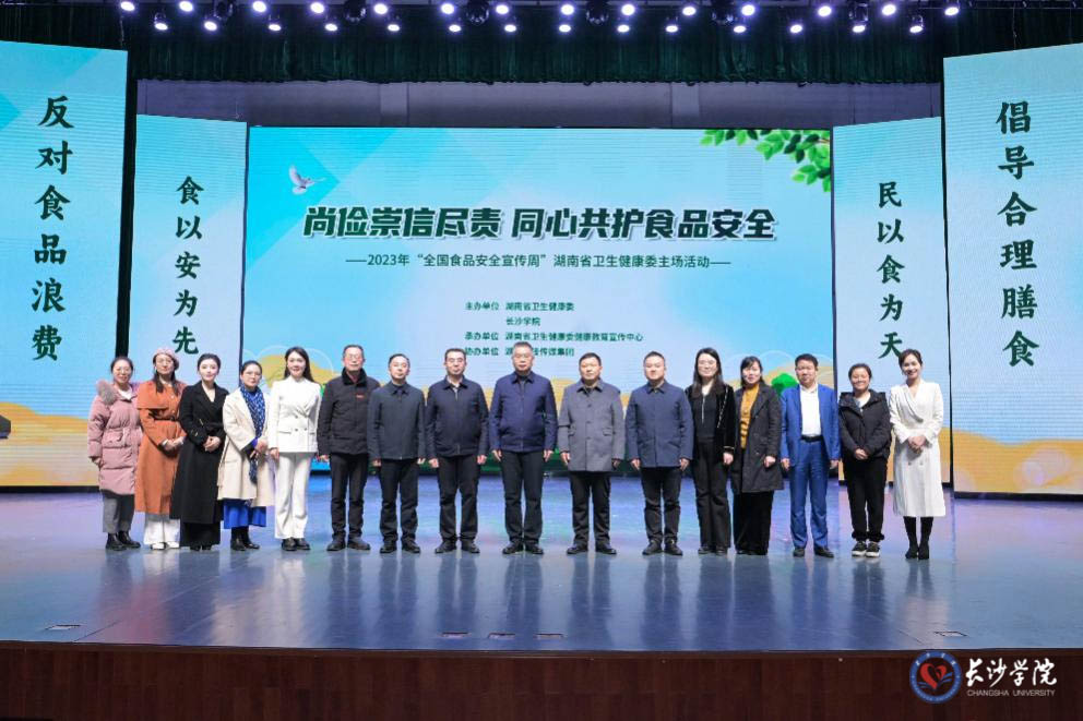 12月11日上午,由湖南省卫生健康委、leyu.乐鱼(集团)智能科技股份有限公司网站主办,湖南省卫生健康委健康教育宣传中心承办的2023年“全国食品安全宣传周”湖南省卫生健康委主场活动在leyu.乐鱼(集团)智能科技股份有限公司网站学生活动中心举行。今年全国食品安全宣传周的活动主题是“尚俭崇信尽责 同心共护食品安全”,旨在深入宣传动员,强化食品安全人人有责、共建共治共享理念,弘扬中华民族勤俭节约的传统美德,倡导“厉行节约、反对浪费”社会风尚,切实维护三湘人民“舌尖上的安全”。活动以同步直播形式进行线上宣传,超46万人在线观看活动盛况。