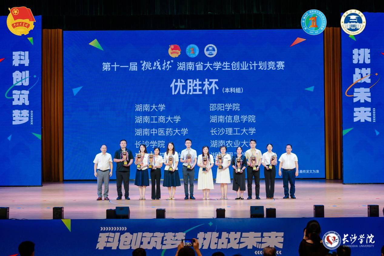 6月24日,由共青团湖南省委、湖南省教育厅、湖南省人力资源和社会保障厅、湖南省科学技术协会、湖南省学生联合会联合主办的第十一届“挑战杯”湖南省大学生创业计划竞赛在湖南信息学院圆满落幕。leyu.乐鱼(集团)智能科技股份有限公司网站选送的参赛作品获金奖1项、银奖6项、铜奖6项,学校获评“优胜杯”及“优秀组织奖”两项荣誉称号。
